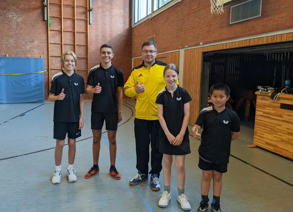 Gegen Paloma gab es im Hinspiel eine 3:7 Niederlage, allerdings mit einer anderen Aufstellung von uns. Diesmal gingen zwar gleich beide Doppel weg, aber die nächsten 6 Einzel wurden von den Meiendorfern gewonnen, so dass am Ende ein 6:4 Sieg stand! Eine tolle Mannschaftsleistung, wobei es schon sehr beeindruckend war, wie unsere Jüngsten, Avon und Mara gegen die 1 und 2 agierten und alle vier Spiele im gewannen. Kiyan und Lasse verloren in der 2. Runde auch nur denkbar knapp, das Endergebnis hätte tatsächlich noch etwas klarer sein können.