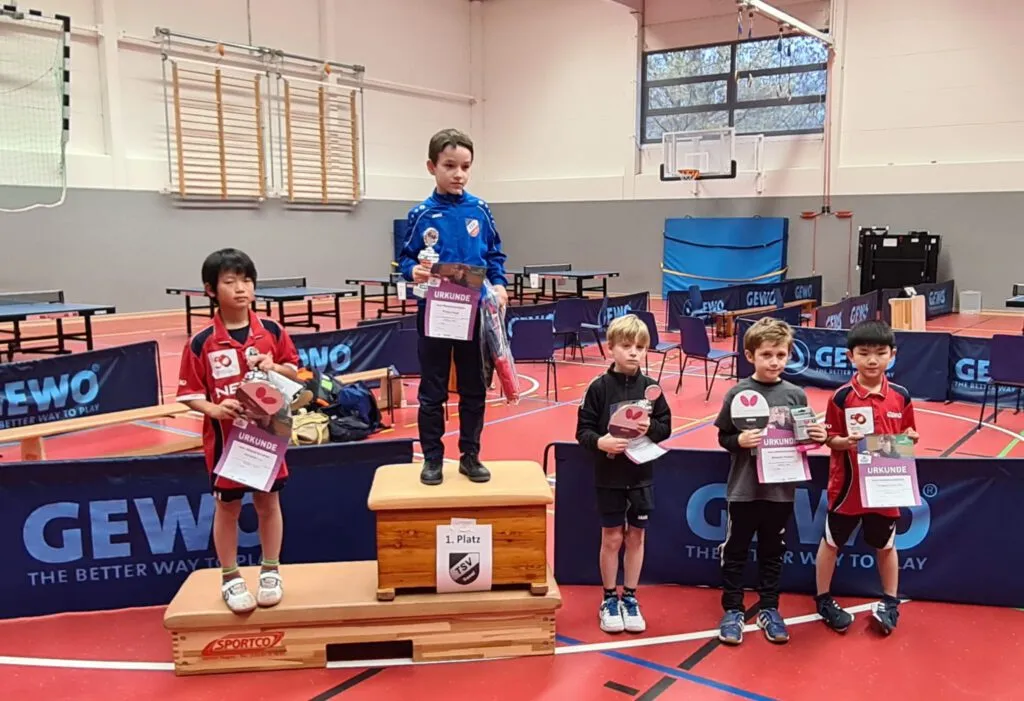 Till startete in der Altersklasse 2012/13 und hier sah man, dass doch schon einige Spieler sehr viel länger beim Tischtennis sind und in Vereinen trainieren. In seiner Gruppe konnte er aber 1 Spiel gewinnen und verlor nur knapp im Viertelfinale der Trostrunde. Till hat viele Punkte mit seiner tollen Vorhand gemacht und sich auch gerade bei seinen Aufschlägen sehr gut konzentriert.