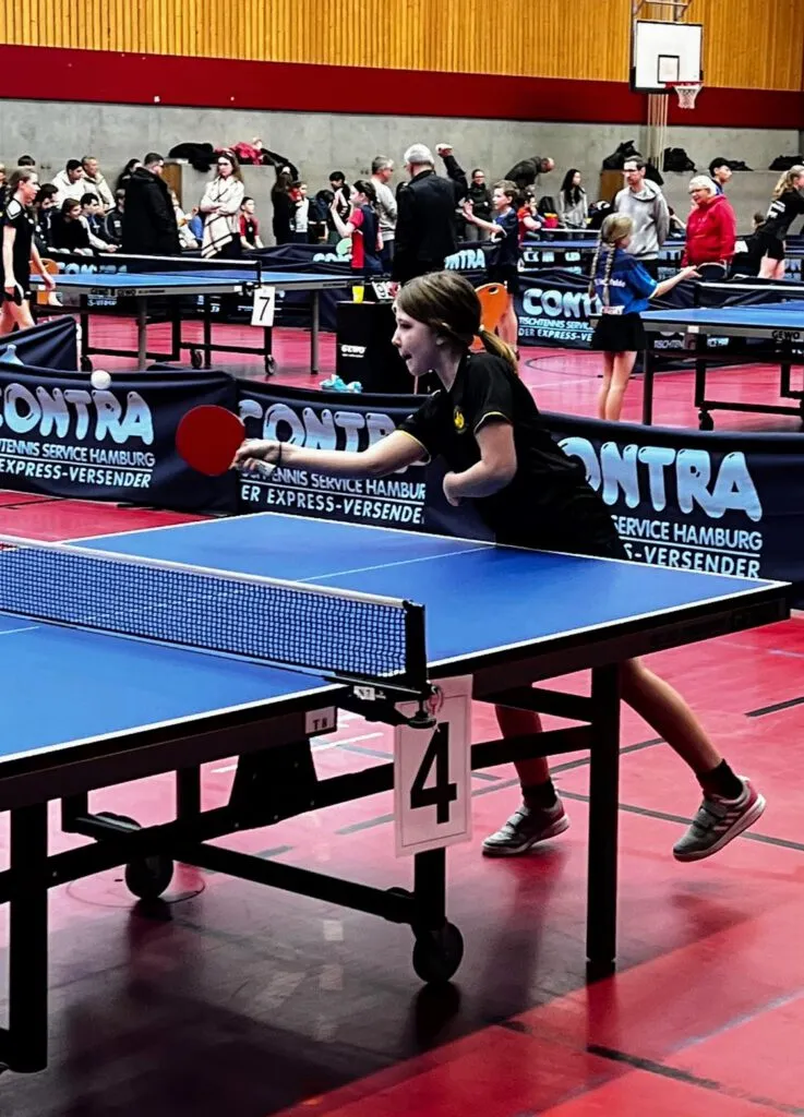 Mara war bei heute bei den älteren Mädchen, in der U15 Klasse am Start. Es begann mit Mixed, wo sie leider mit ihrem Niendorfer Mixedpartner Ben knapp im 5. Satz verlor. Im Doppel verlor sie mit Carolina aus Wellingsbüttel nur knapp 1:3 gegen die späteren Hamburger Meisterinnen!