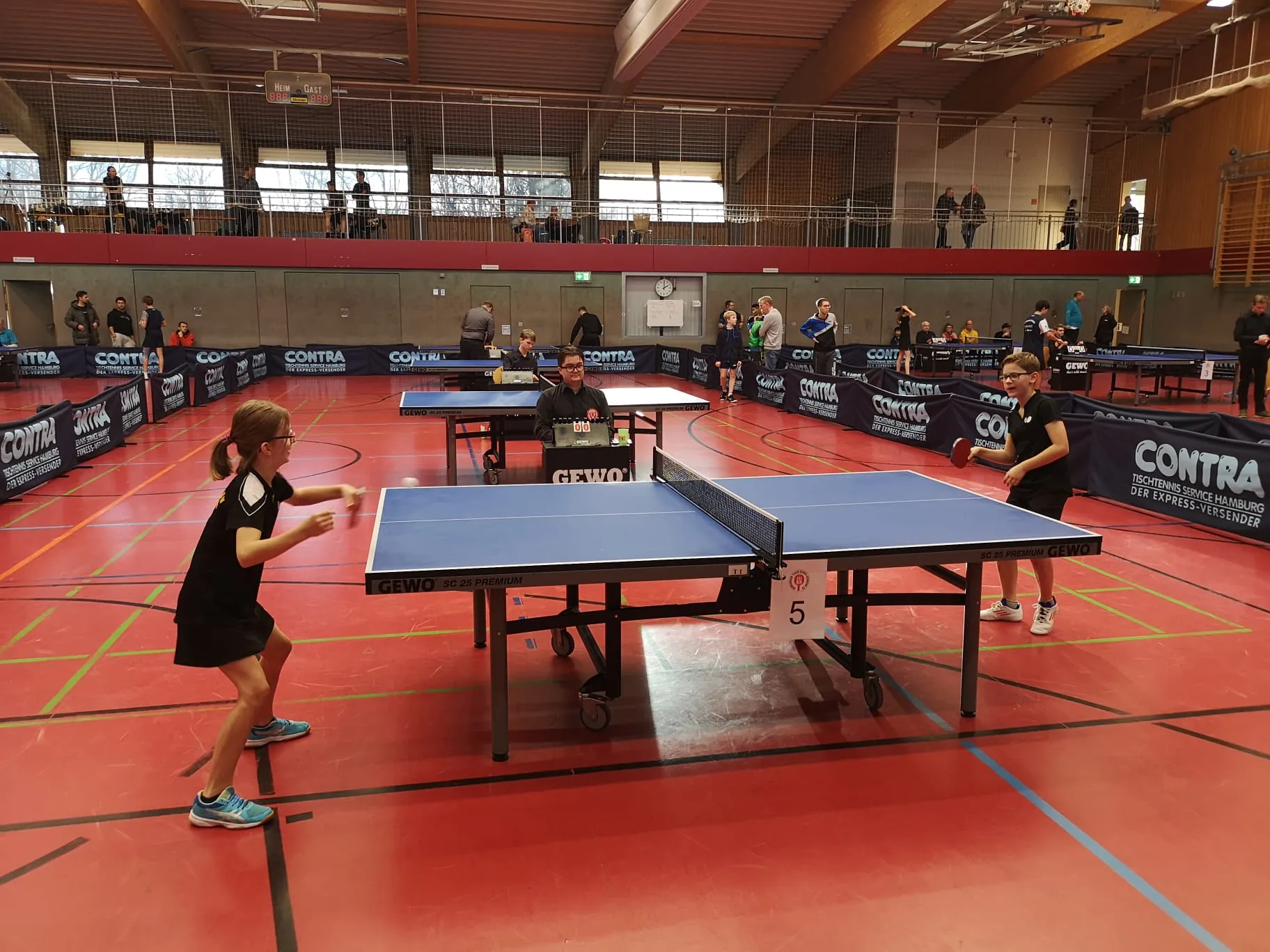 Nora startete mit 2 klaren Siegen, im Spiel um den Gruppensieg lag sie gegen die starke Gegnerin vom Horner TV bereits mit 0:2 Sätzen und 3:5 hinten, als Gunter ein Timeout nimmt und Nora wieder aufbauen und in Spur bringen kann. Und tatsächlich gewinnt sie das Spiel noch mit 3:2 und wird damit auch Gruppensiegerin! Was für eine tolle spielerische und taktische Leistung der beiden Meiendorfern!
