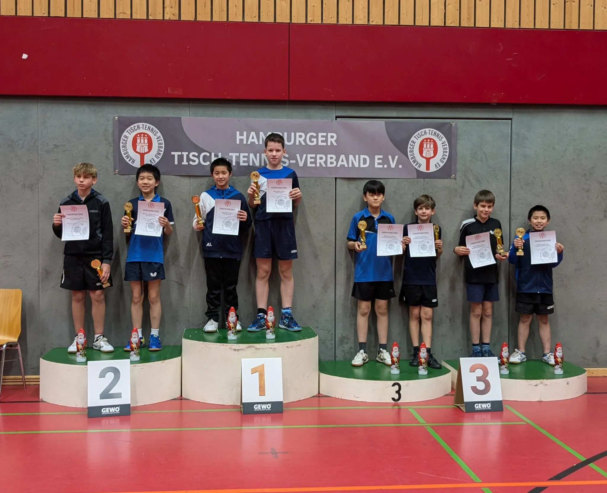 Wir Trainer sind unheimlich stolz auf die Leistungen unserer Kiddies, es macht sehr viel Spaß mit denen die Tage in den Hamburger Hallen zu verbringen. Sehr großen Anteil haben natürlich auch die Eltern, die immer gut drauf sind und alle kräftig unterstützen.