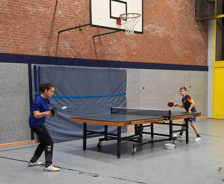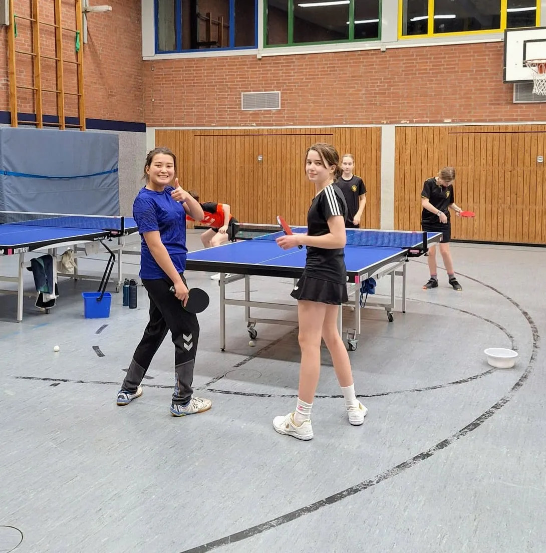 Die Mannschaftskollegin von Nathalie, die mit Malene zusammen in der Regionalliga in Kiel spielt, schnappte sich gleich den Schläger und hatte sichtlich Spaß mit unseren Kids.