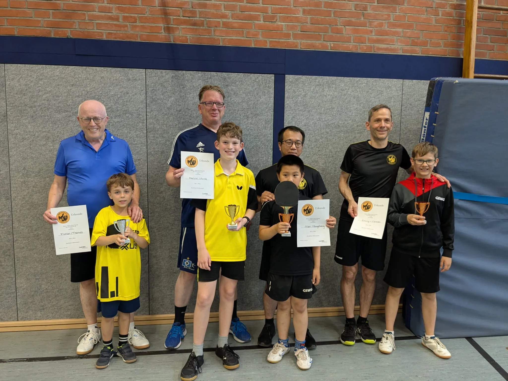 Im Finale standen sich dann erwartungsgemäß die Paarungen gegenüber, wo die Väter selber im Verein aktiv sind oder waren. Es siegten Melvin mit Arne vor Florian mit Thomas.