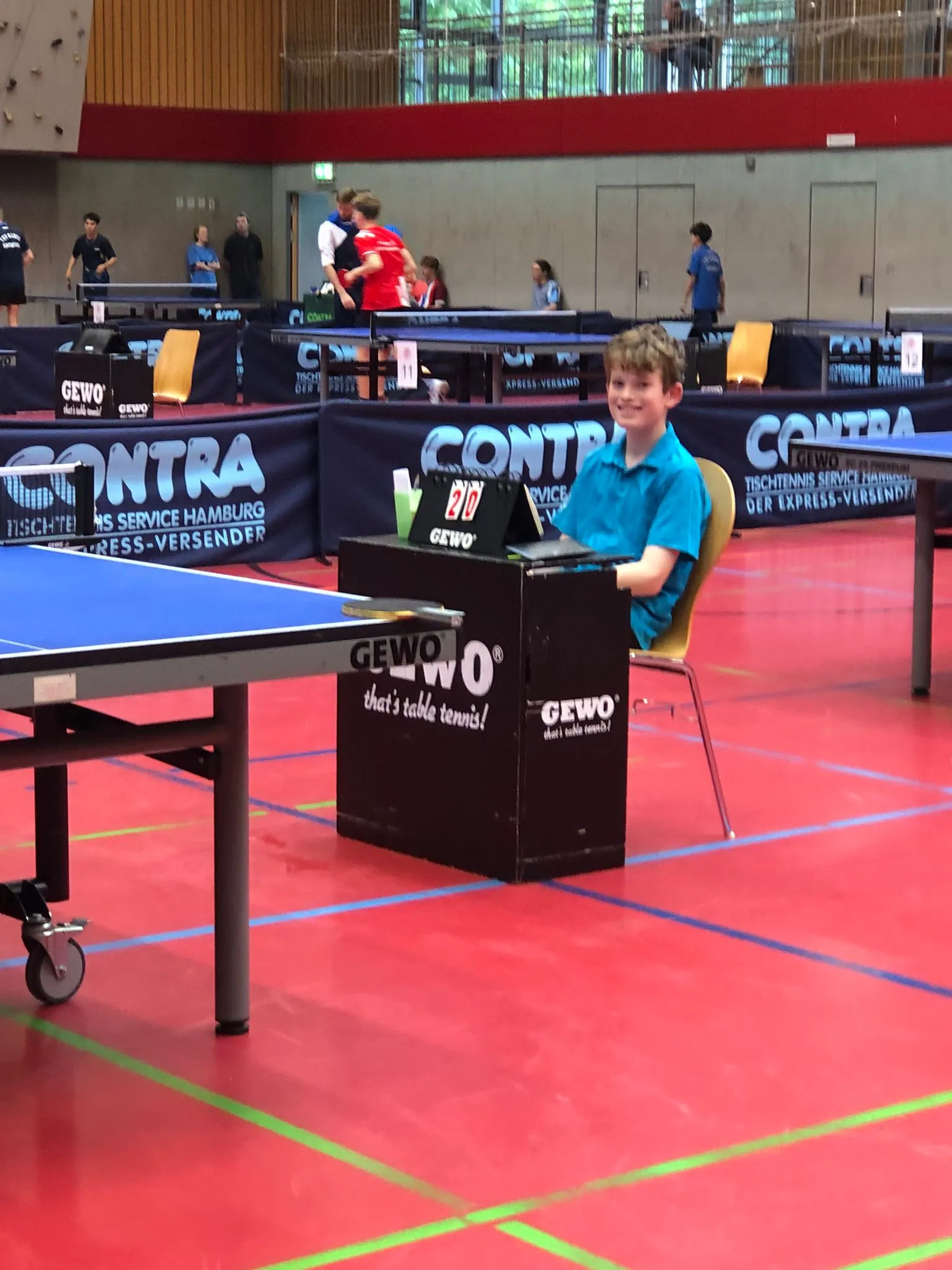 Sensationell war allerdings sein erster Satz gegen Nationalspieler Jeffrey Wei, bei dem er im Satzverlauf mehrere Male knapp in Führung lag, sehr mutig spielte und Jeffrey bei dem Stande von 8:8 so richtig aufdrehten musste, um den Satz für sich zu entscheiden. Dieses Erlebnis ist nicht so vielen vergönnt!